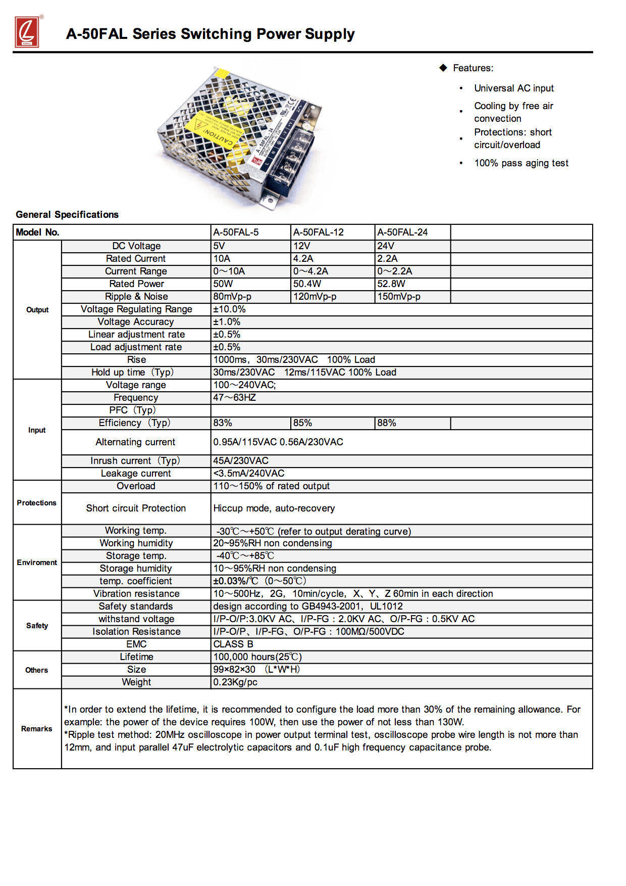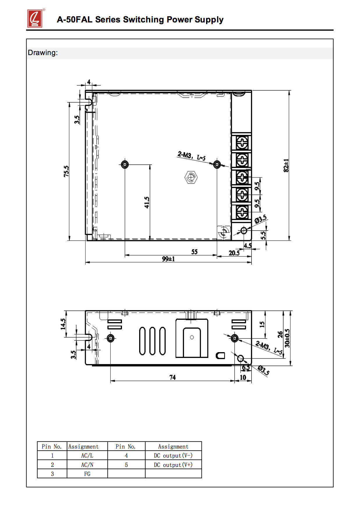 Product Type: Switching Power SupplyBrand: CHUANGLIANProduct model name: A-50FAL-5 |