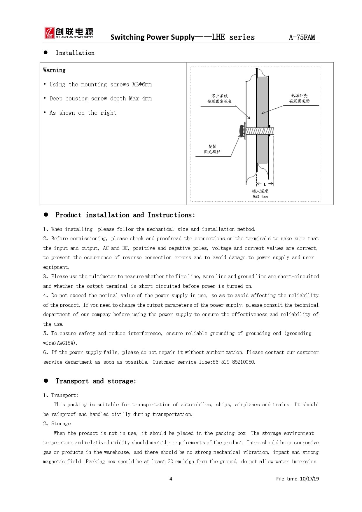 Product Type : Switching Power Supply Grid TypeBrand: CHUANGLIANProduct model name: A-75FAM-5 |