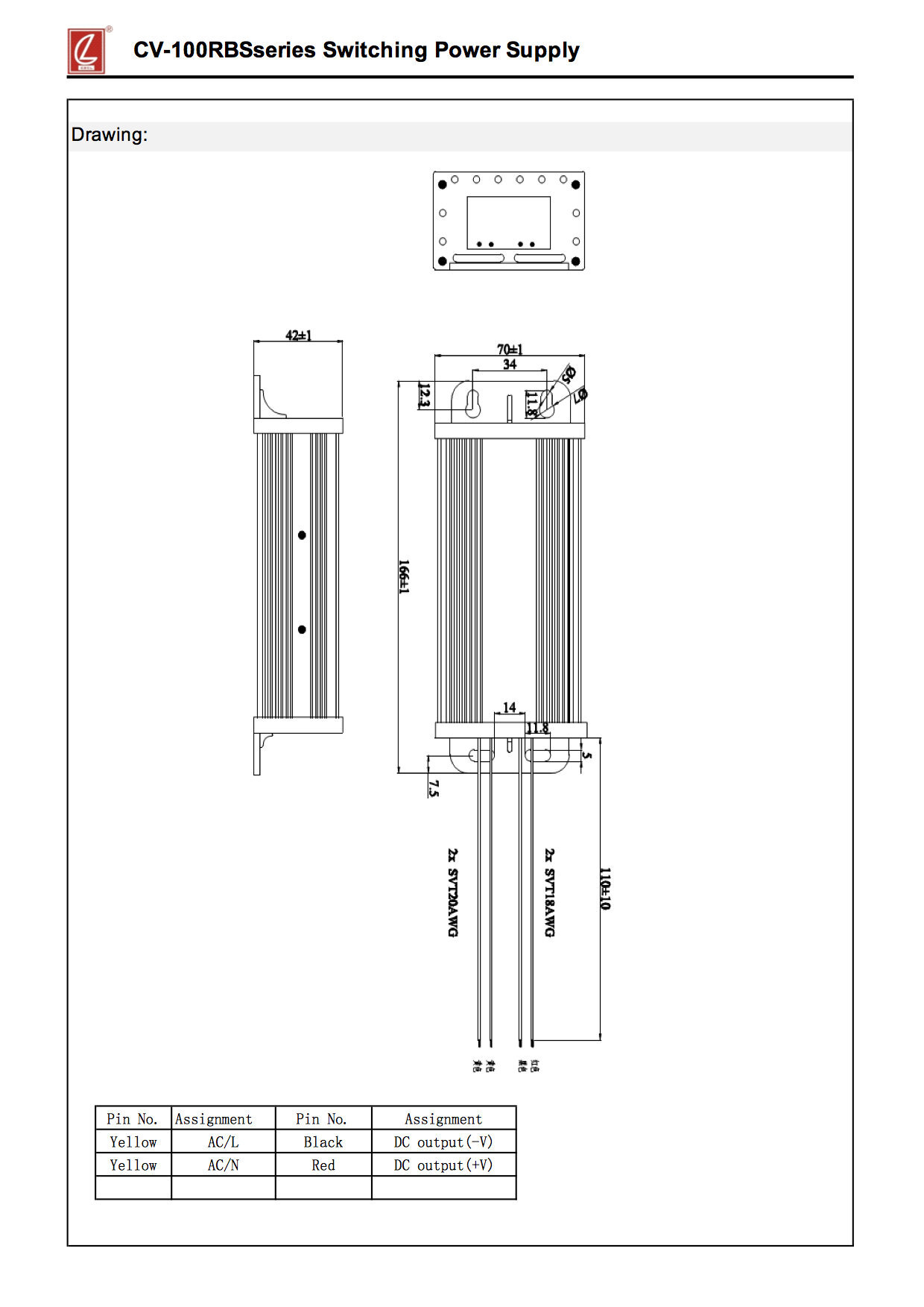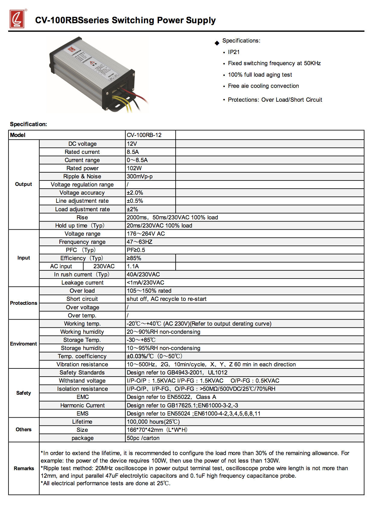 Product Type: Power supply waterproof modelBrand: CHUANGLIANProduct model name: CV-100RB-12 |