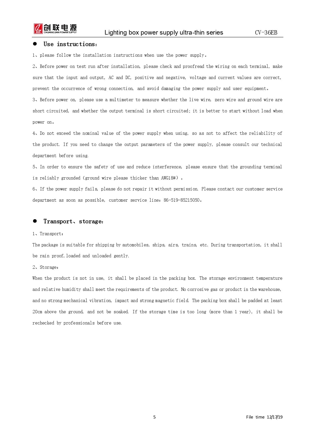 Product Type: Switching Power Supply Slim ModelBrand: CHUANGLIANProduct model name: CV-36EB-12 |