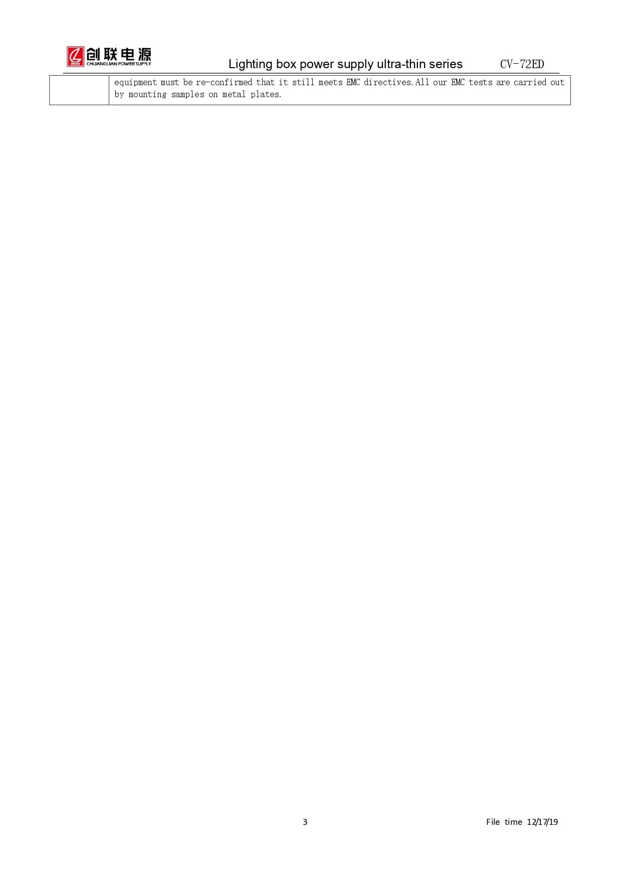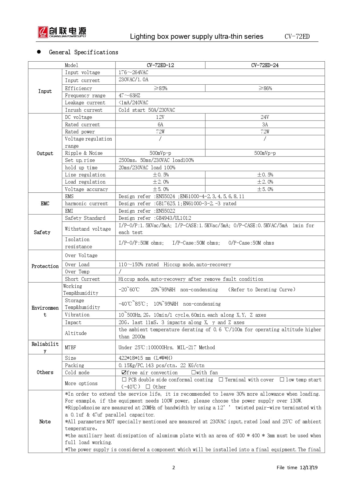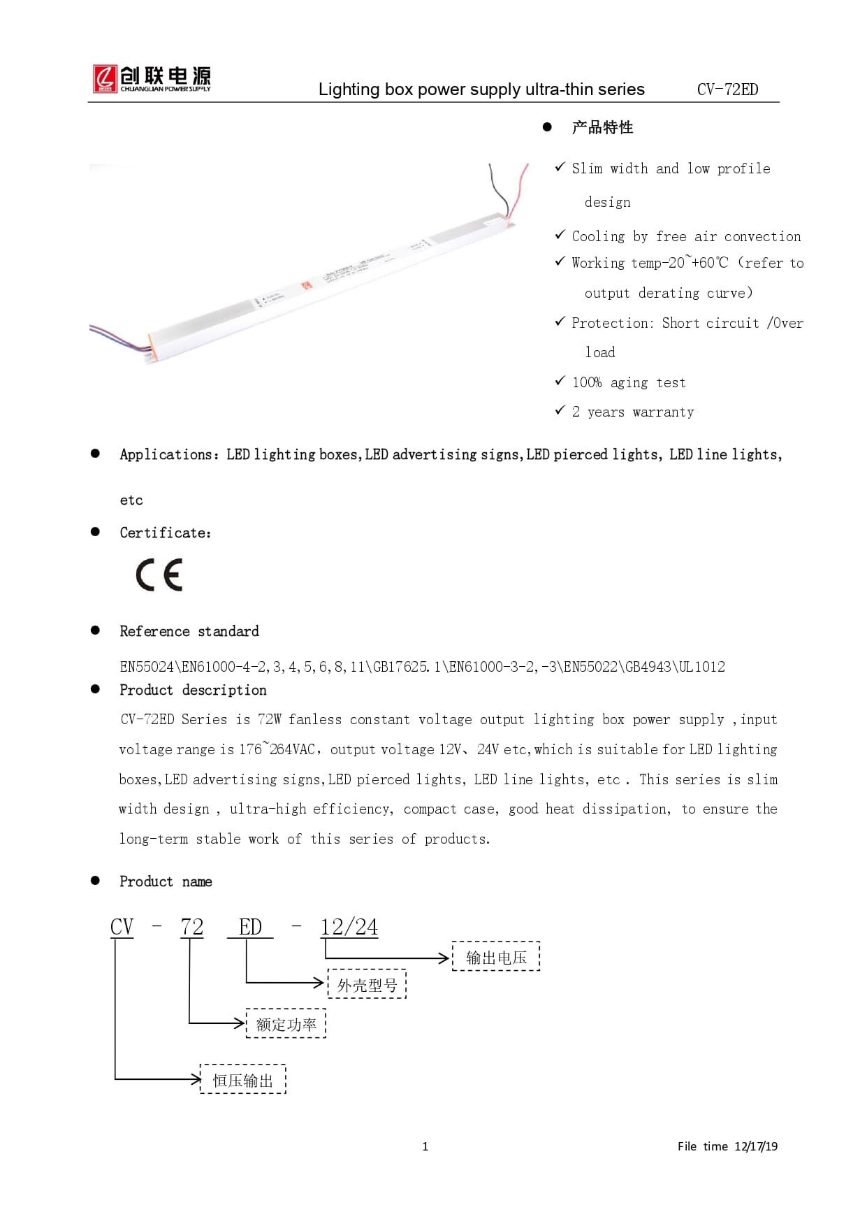 Product Type: Switching Power Supply Slim ModelBrand: CHUANGLIANProduct model name: CV-72ED-24 |