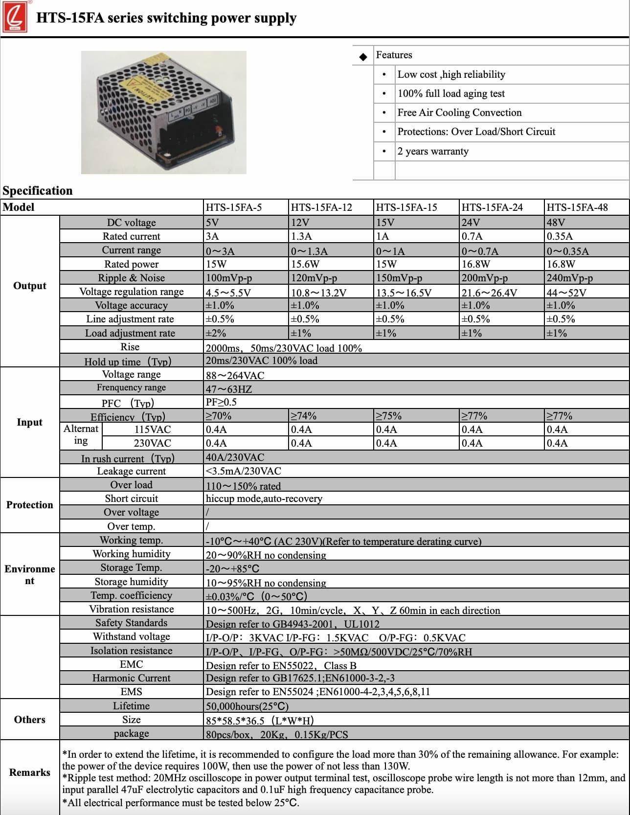 Product Type: Switching Power SupplyBrand: CHUANGLIANProduct model name: HTS-15FA-5 |