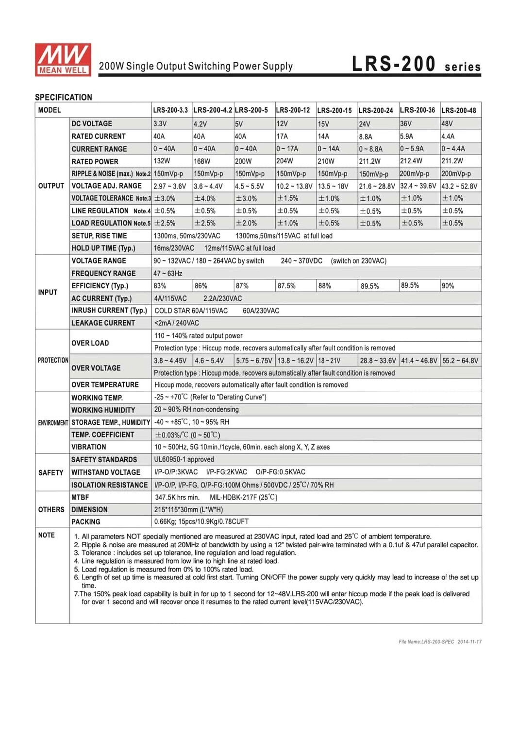 Product Type : Switching Power SupplyBrand: MEAN WELLProduct model name: LRS-200-5 |