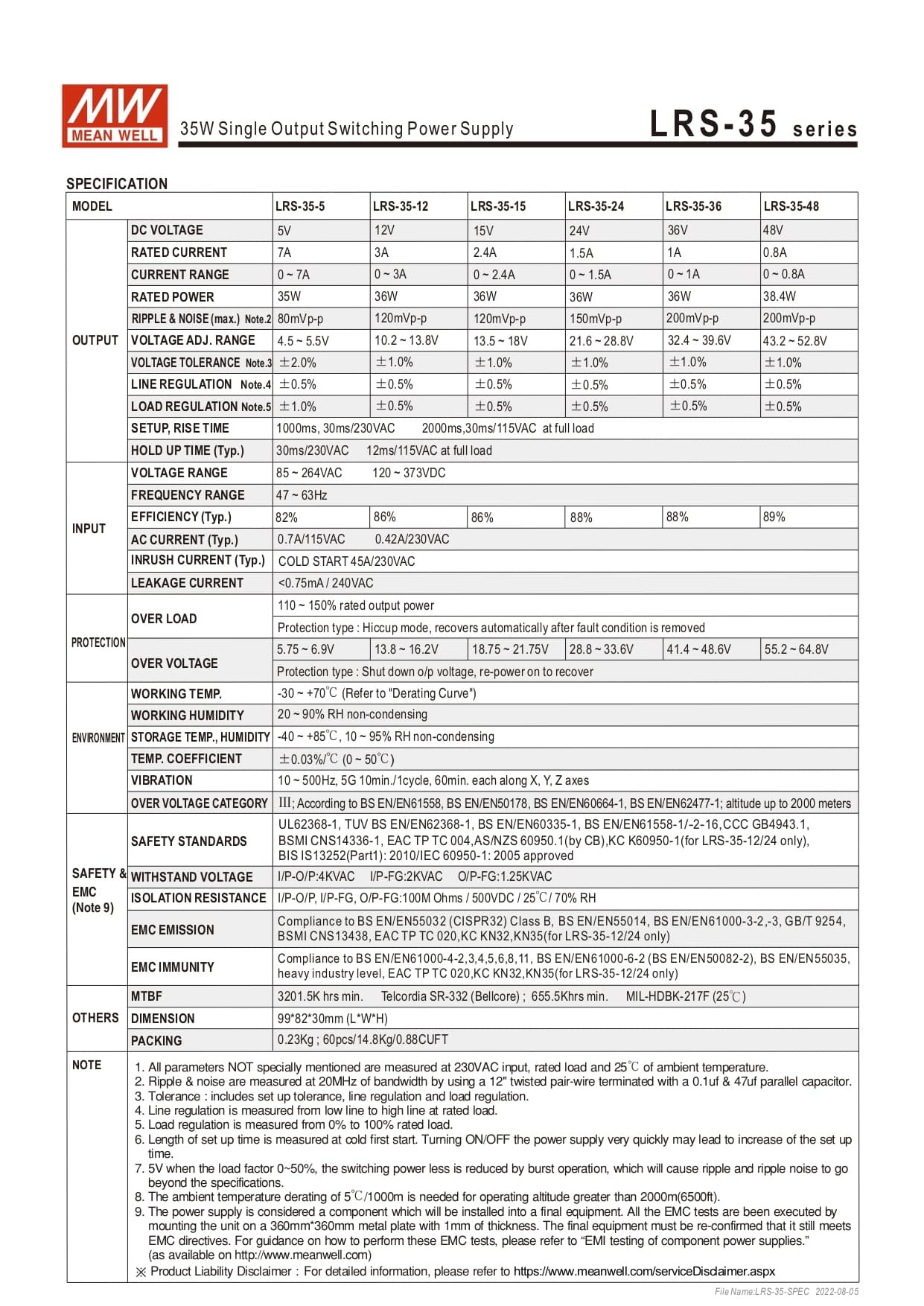 Product Type : Switching Power SupplyBrand: MEAN WELLProduct model name: LRS-35-24 |