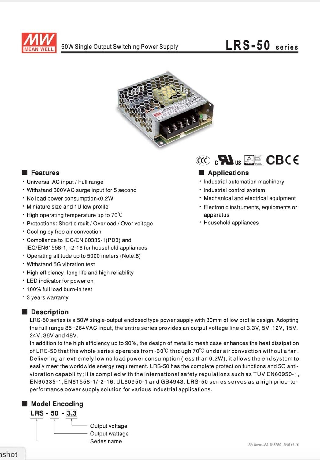 Product Type : Switching Power SupplyBrand: MEAN WELLProduct model name: LRS-50-5 |