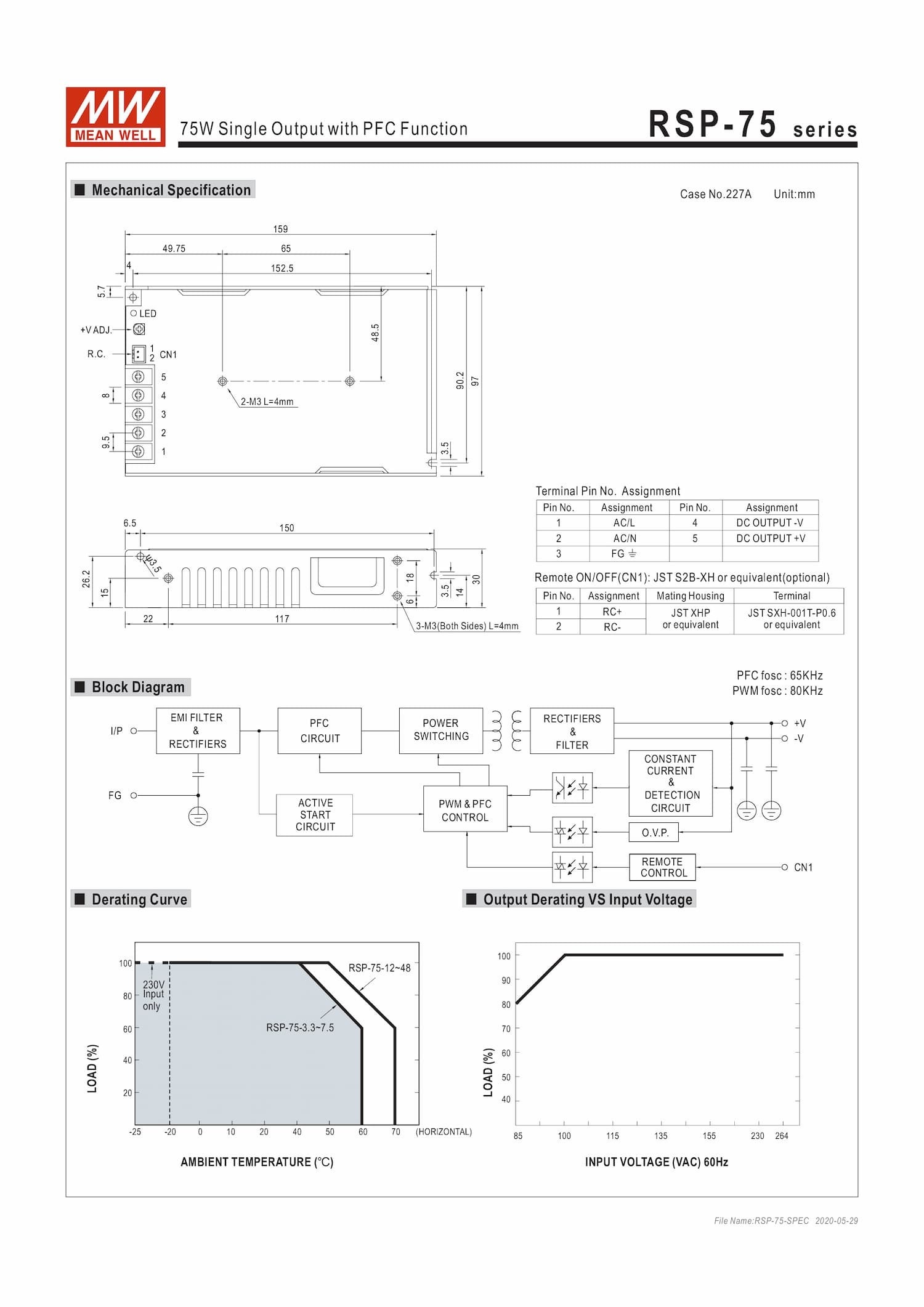 Product Type : Switching Power SupplyBrand: MEAN WELLProduct model name: RSP-75-24 |