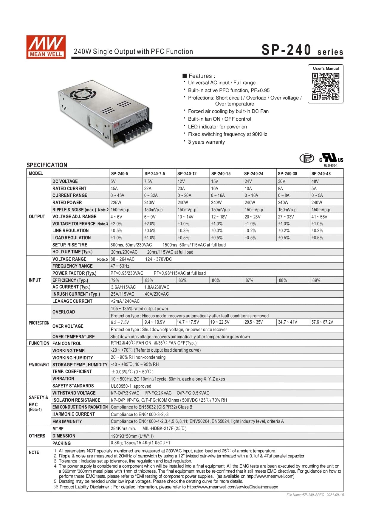 Product Type : Switching Power SupplyBrand: MEAN WELLProduct model name: SP-240-12 |